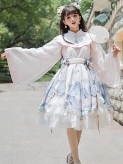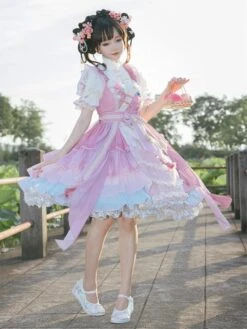 Chinese Style Lolita Dress Ruffles Sleeveless Polyester Chinese Style Lace Pink Chinese Style Lolita