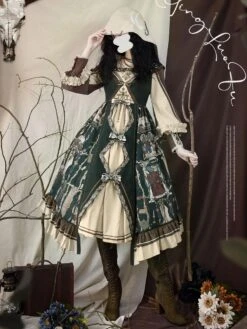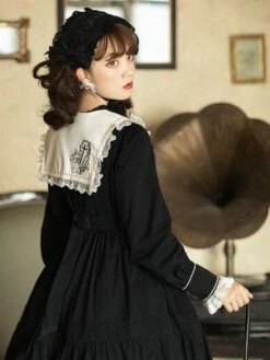Gothic Lolita OP Dress Color Block Long Sleeves Ruffles Pleated Lace Up Black Lolita One Piece Dress