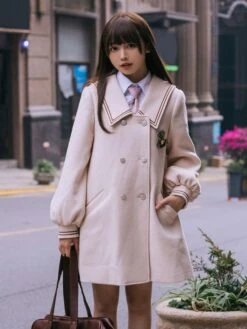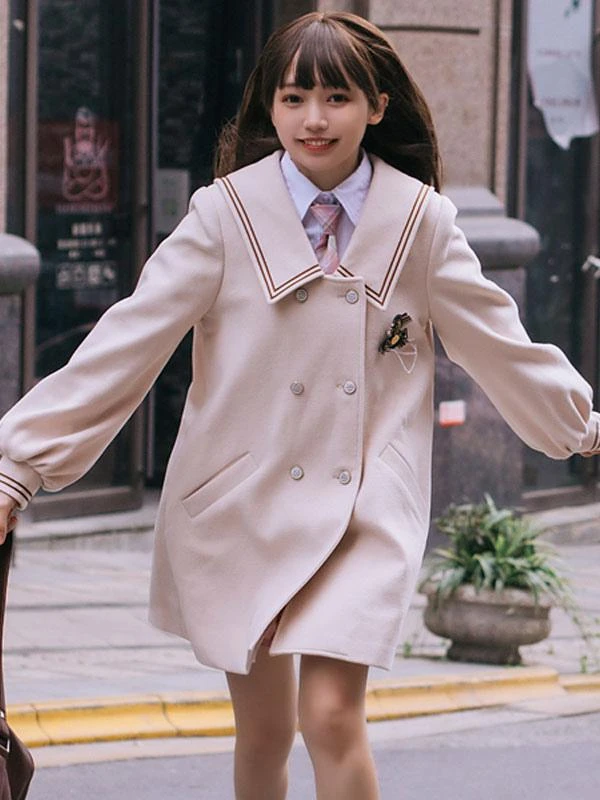 Academic Lolita Coats Ecru White Coat Overcoat Polyester Fall Lolita Outwears