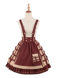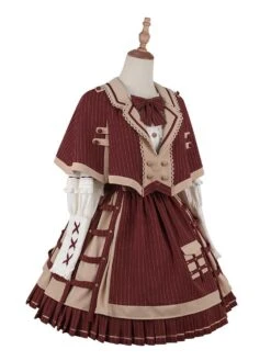 Be the first to review “Academic Lolita Outfits Dark Red Chains Stripes Long Sleeves Cloak Skirt Hat” Cancel reply