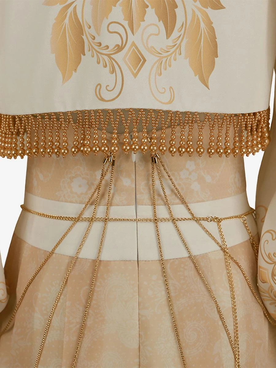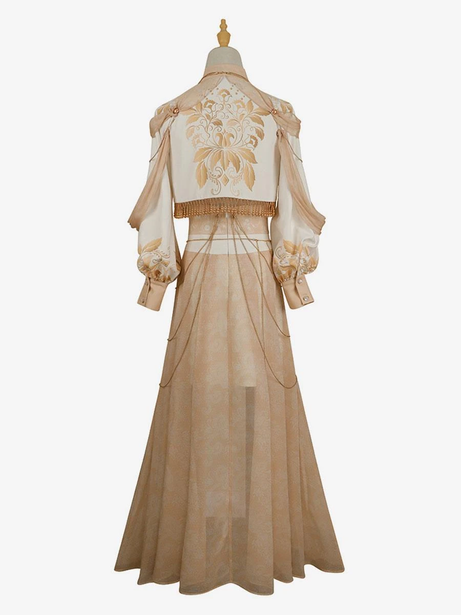 Academic Lolita Outfits Light Brown Floral Print Long Sleeves Top Skirt