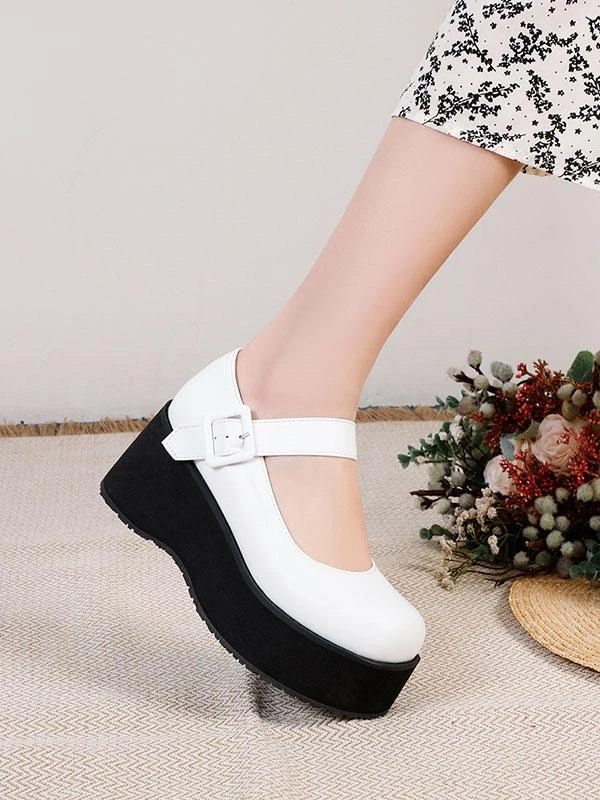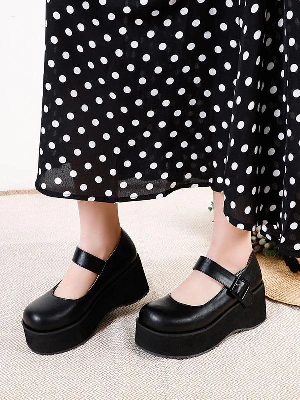 Academic Lolita Shoes Black Round Toe PU Leather Daily Casual Lolita Pumps