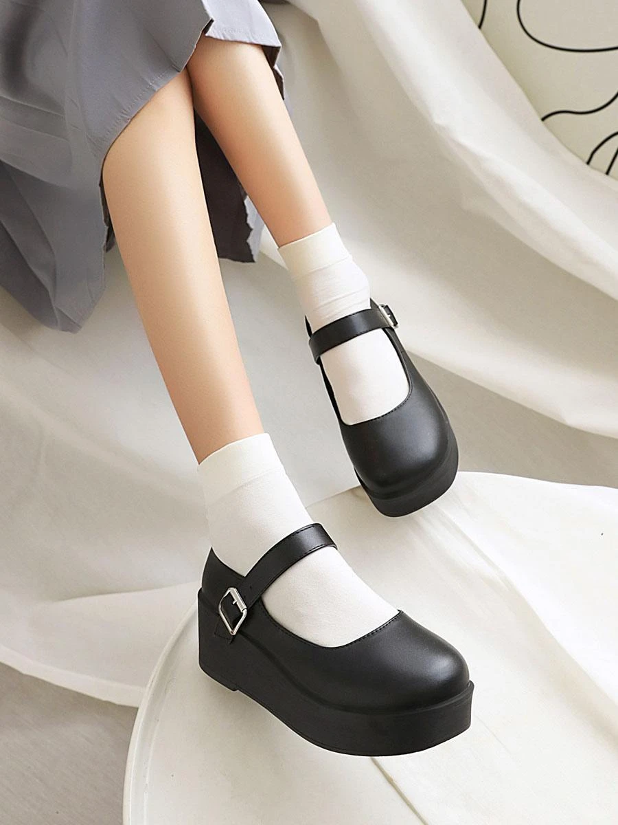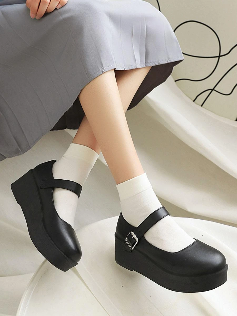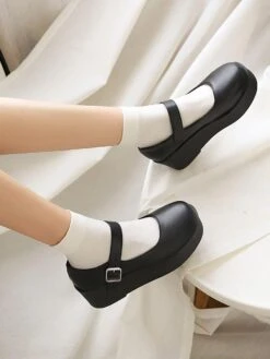 Be the first to review “Academic Lolita Shoes Black Round Toe Wedge Heel PU Leather Lolita Pumps” Cancel reply