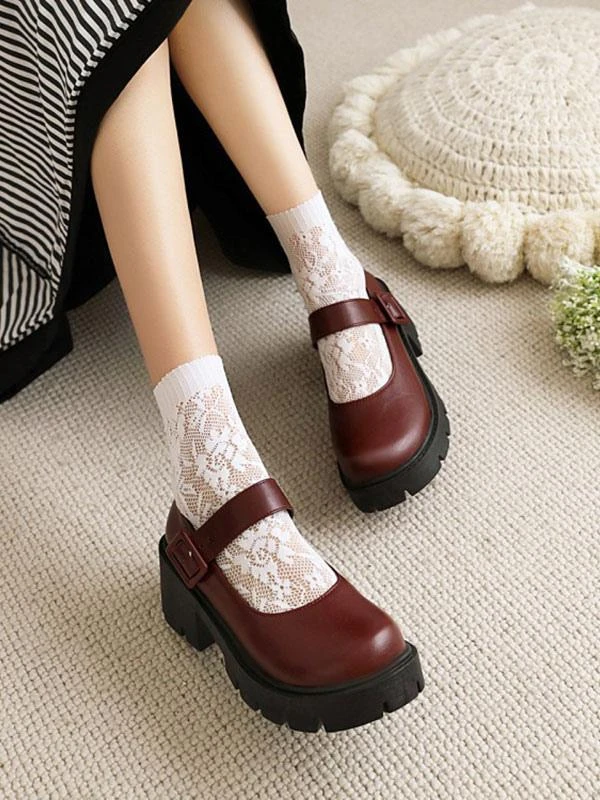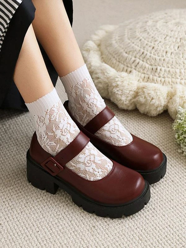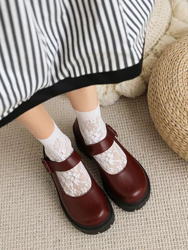 Academic Lolita Shoes Burgundy Round Toe PU Leather Lolita Pumps