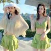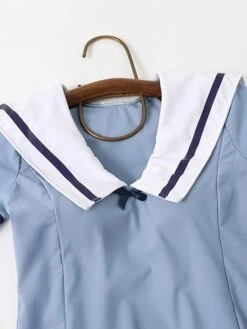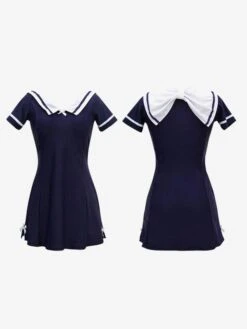 Academic Lolita Swimsuits Deep Blue Bows Short Sleeves Dress Pants