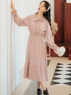 Academic Sweet Lolita OP Dress Lavender Long Sleeve Polyester Lolita One Piece Dresses