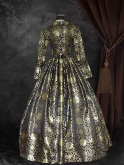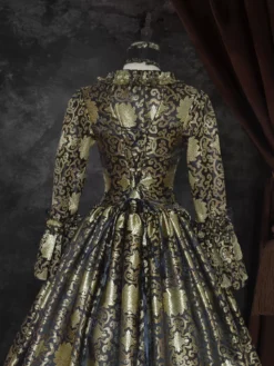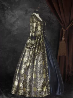 Black Gold Retro Costumes Lace Up Satin Fabric Marie Antoinette Costume Floral Print Dress Women’s Gothic Set Party Prom Dress