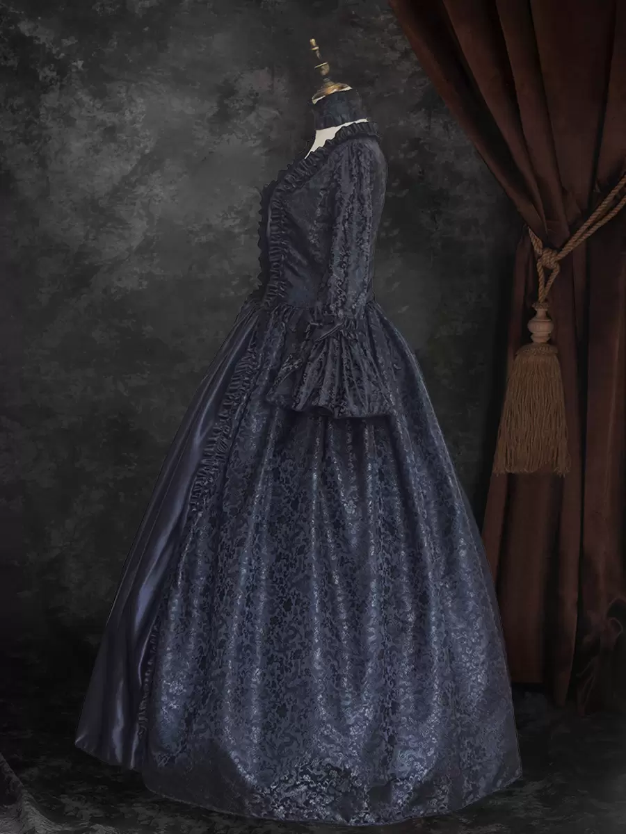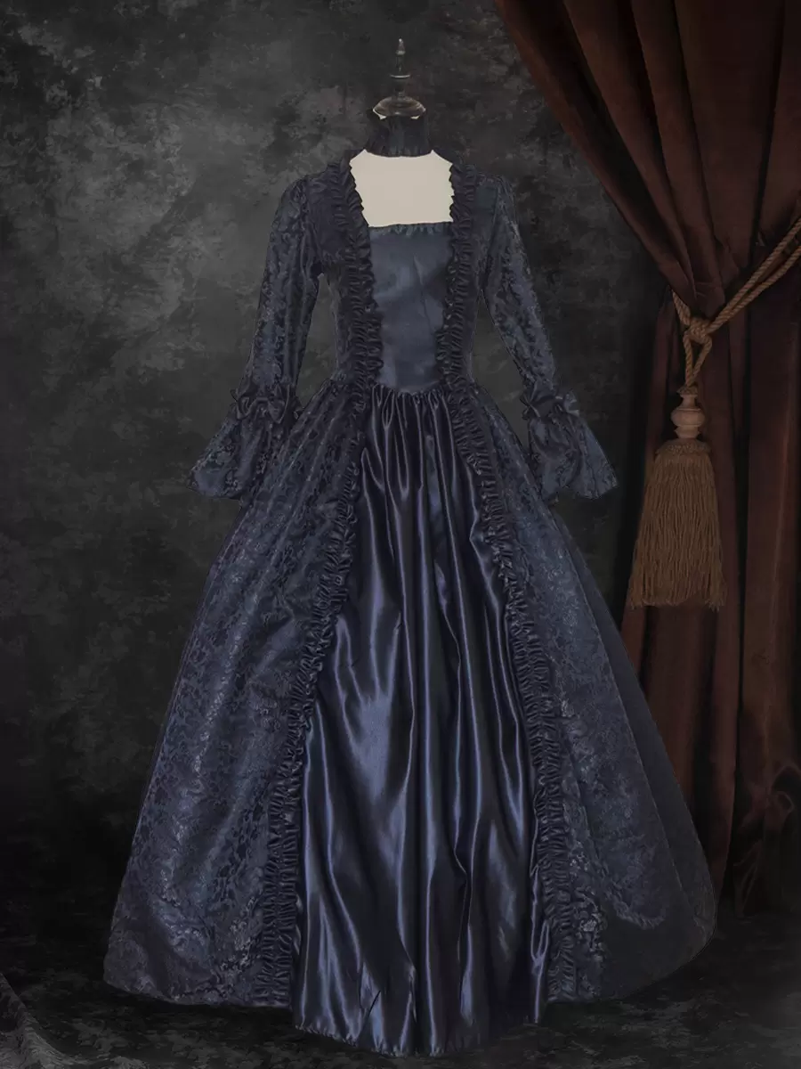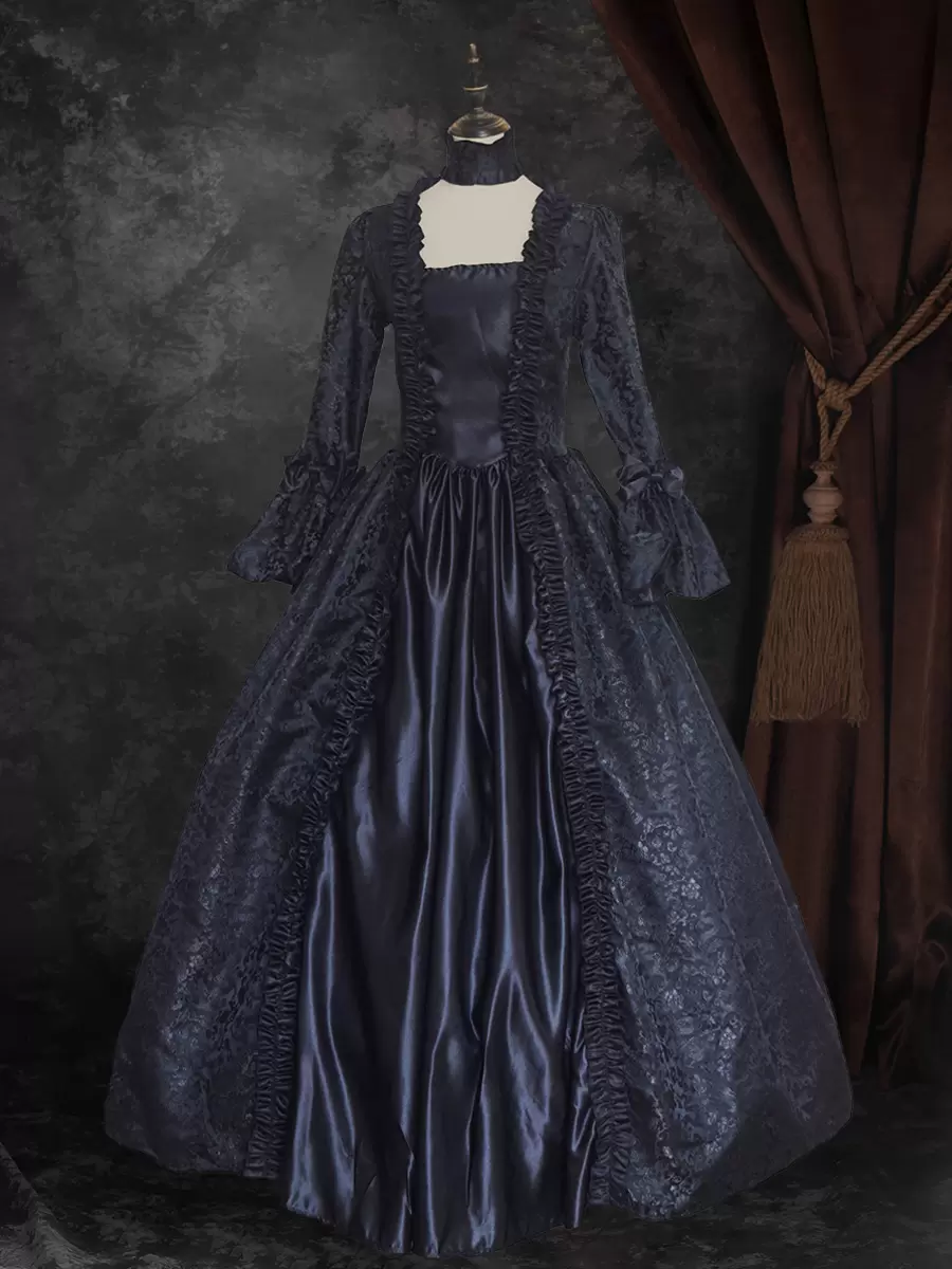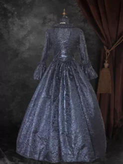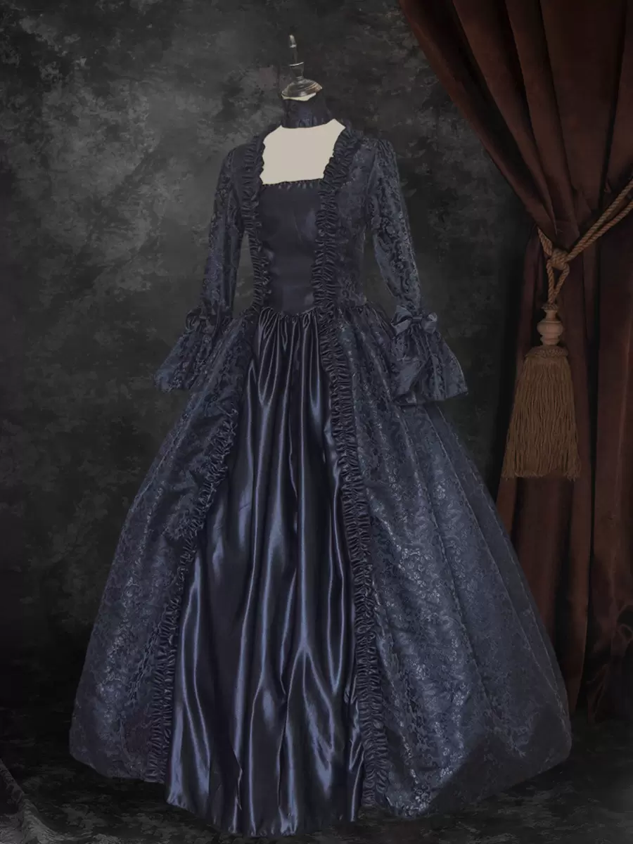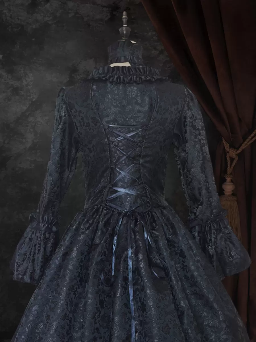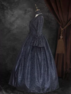 Black Gold Retro Costumes Women’s Floral Print Marie Antoinette Costume Lace Up Satin Fabric Set Dress Choker Gothic 18th Century Costume