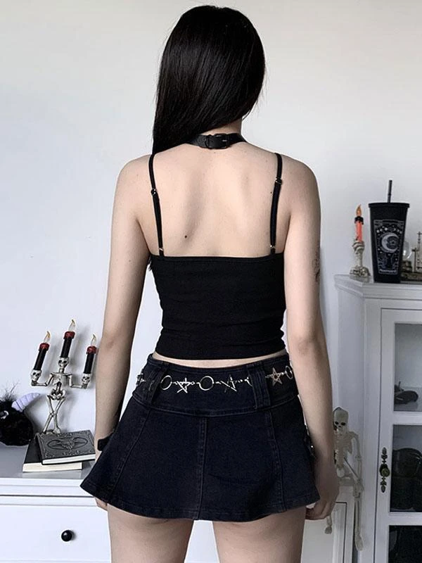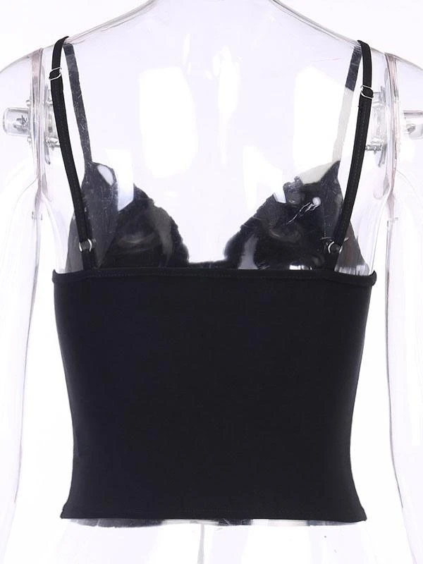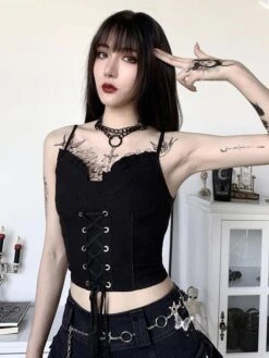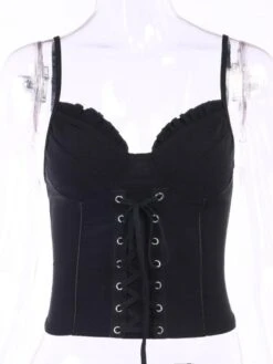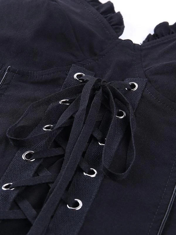 Black Gothic Tops Spaghetti Lace Up Polyester Retro Tops