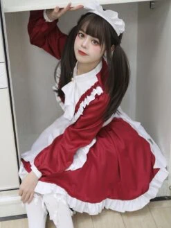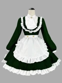 Black Maid Lolita Dresses Ruffles Long Sleeves Double Buckles Lolita Dress