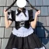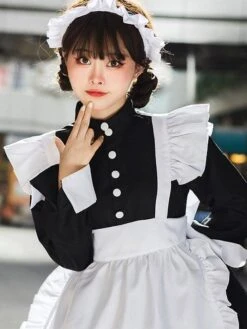 Black Maid Lolita Dresses Ruffles White Apron Lolita Dress