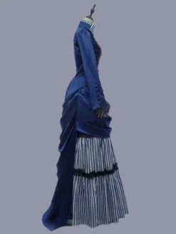 Blue Retro Costumes Women’s Stripes Ruffles Polyester Tunic Dress Marie Antoinette Costume Retro Vintage Clothing