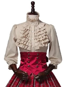Burgundy Retro Costumes Ruffles Polyester Plaid Top Marie Antoinette Costume Women’s Euro-Style Set 18th Century Costume
