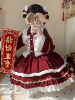 Chinese Style Lolita Dress Ruffles Long Sleeves Polyester Chinese Style Red Chinese Style Lolita