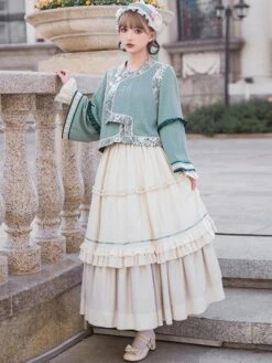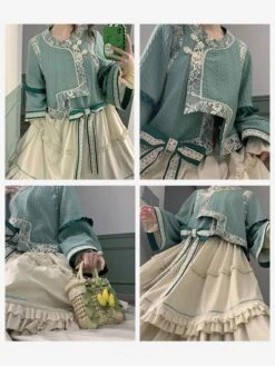 Be the first to review “Chinese Style Lolita Outfits Light Green Bow Lace Lace Long Sleeves Skirt Top” Cancel reply