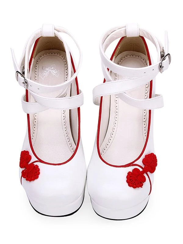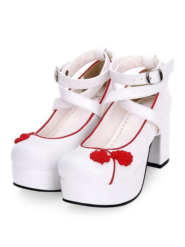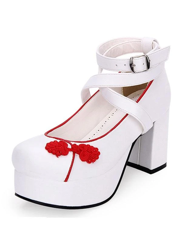 Chinese Style Lolita Shoes Embroidery Strappy Chunky High Heel Lolita Pumps