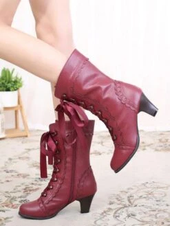 Be the first to review “Classic Lolita Boots Round Toe Prism Heel Lace Up Champagne Lolita Winter Boots” Cancel reply