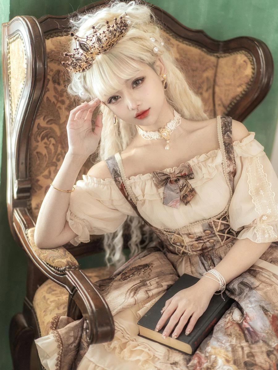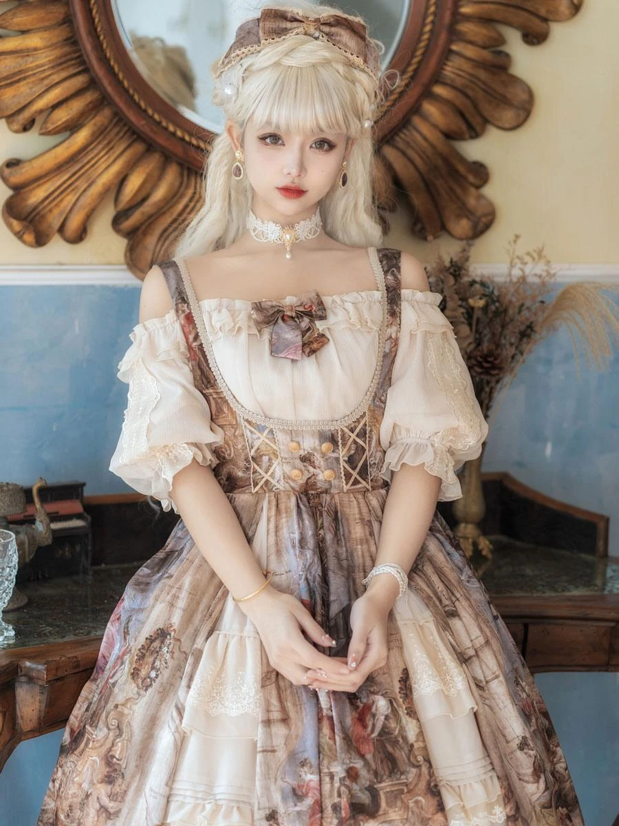 Classic Lolita Dress Fairy Tale Bows Golden Lolita JSK Dress