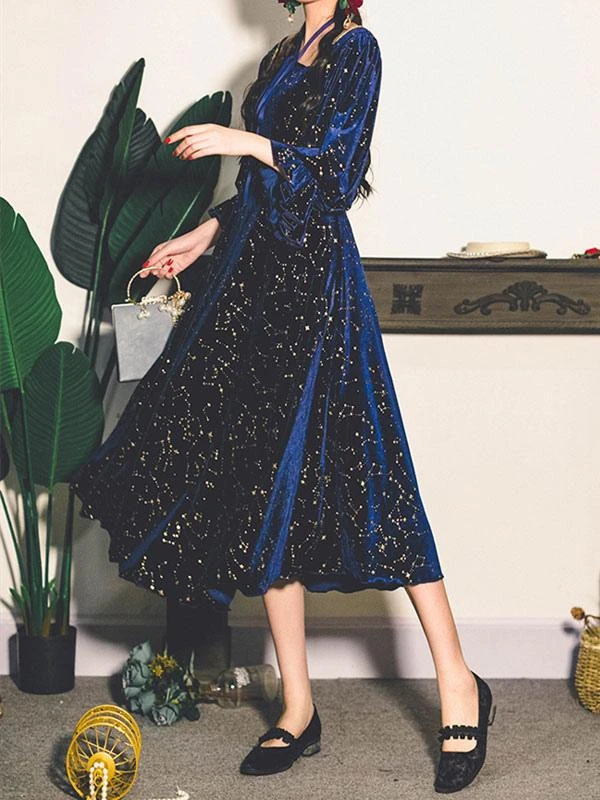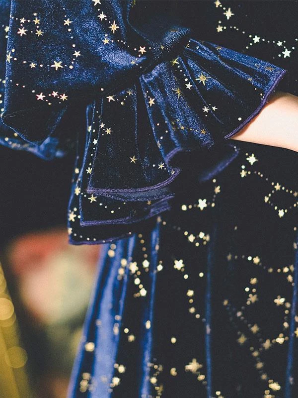 Be the first to review “Classic Lolita Dress Stars Print Long Sleeve Deep Blue Lolita One Piece Dress” Cancel reply