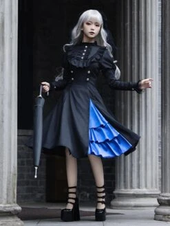 Classic Lolita OP Dress Lac Ruffle Button Two Tone Cotton Red Lolita One Piece Dress
