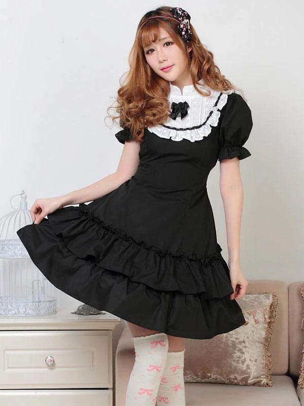 Classic Lolita OP Dress Two-Tone Black Bows Ruffles Lolita One Piece Dresses