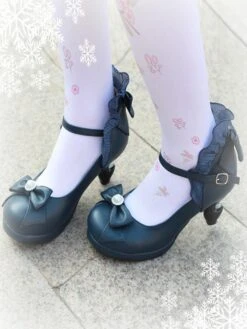 Be the first to review “Classic Lolita Pumps Bow Strappy Ruffle PU Deep Blue Lolita Footwear” Cancel reply