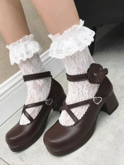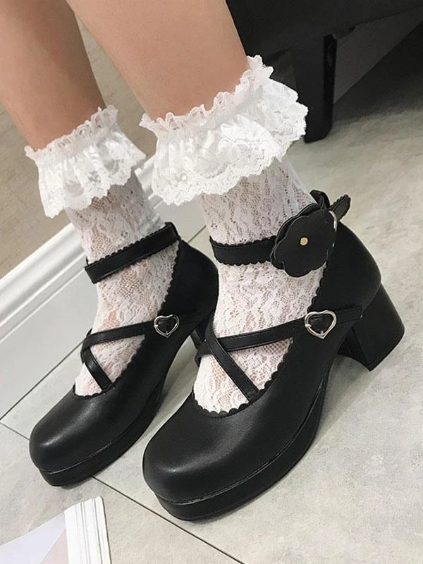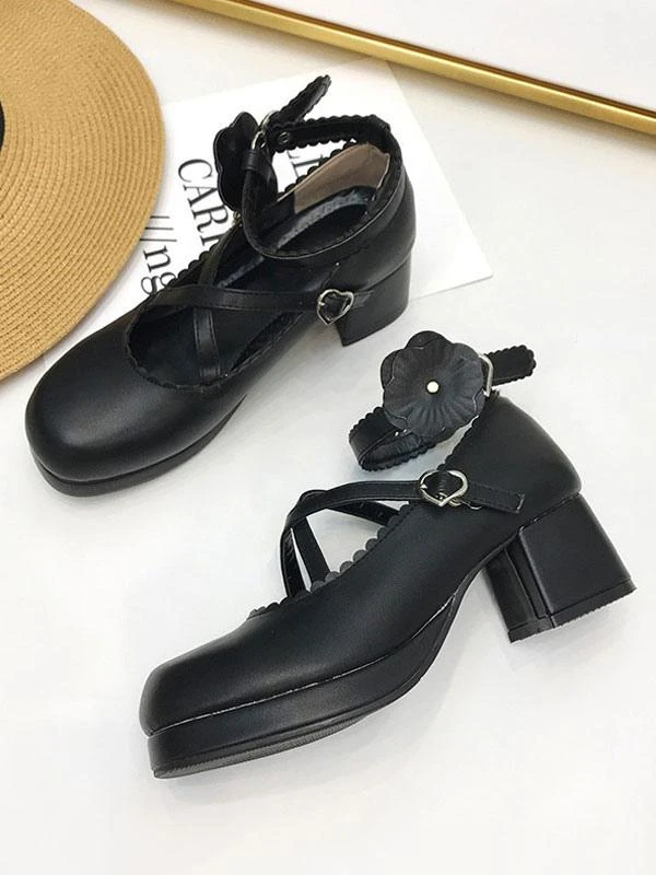 Be the first to review “Classic Lolita Shoes Strappy Flower Platform White Chunky Heel Lolita Footwear” Cancel reply