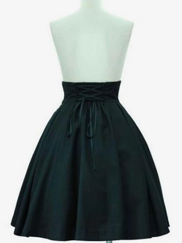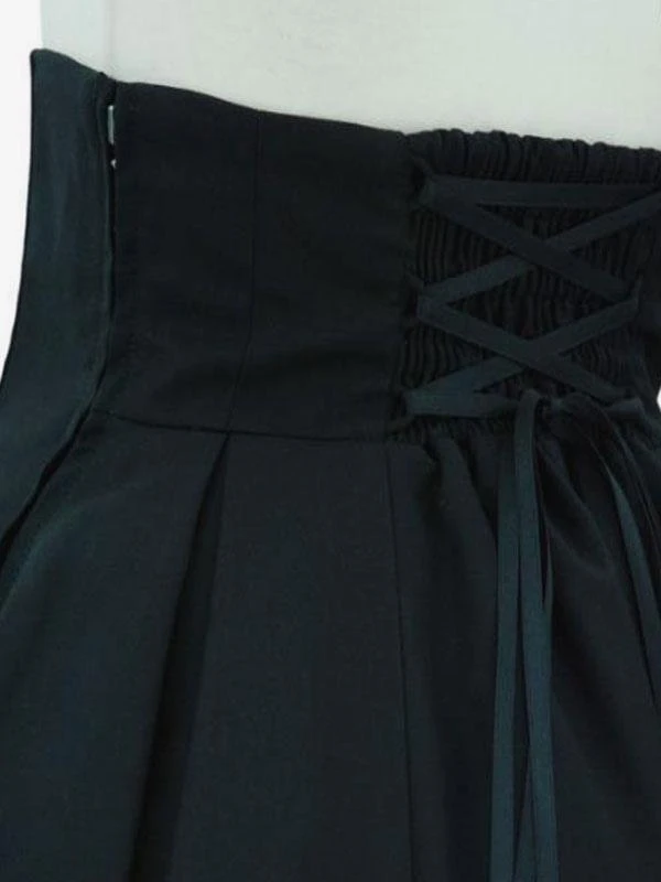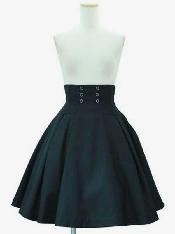 Classic Lolita SK Grommet Lace Up Black Cotton Lolita Skirts