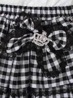 Classic Lolita SK Plaid Bow Lace Black Lolita Skirt