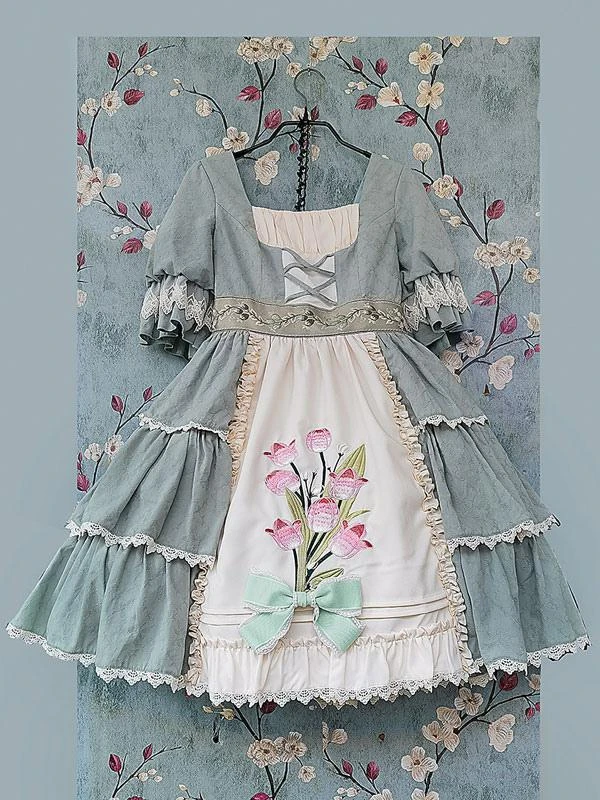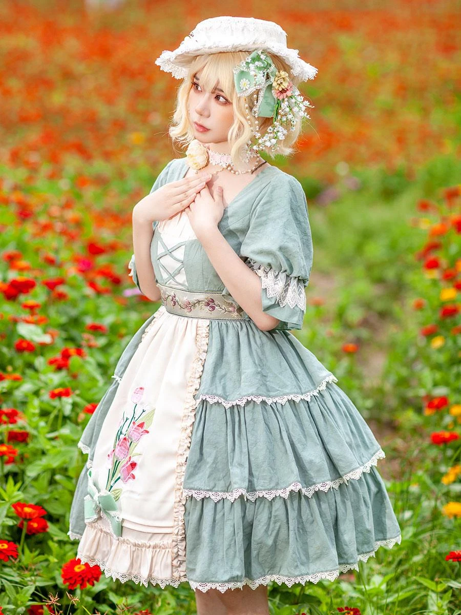 Be the first to review “Classical Lolita Dress Cotton Ruffles Lolita Dresses Short Sleeves Floral Print Sage” Cancel reply