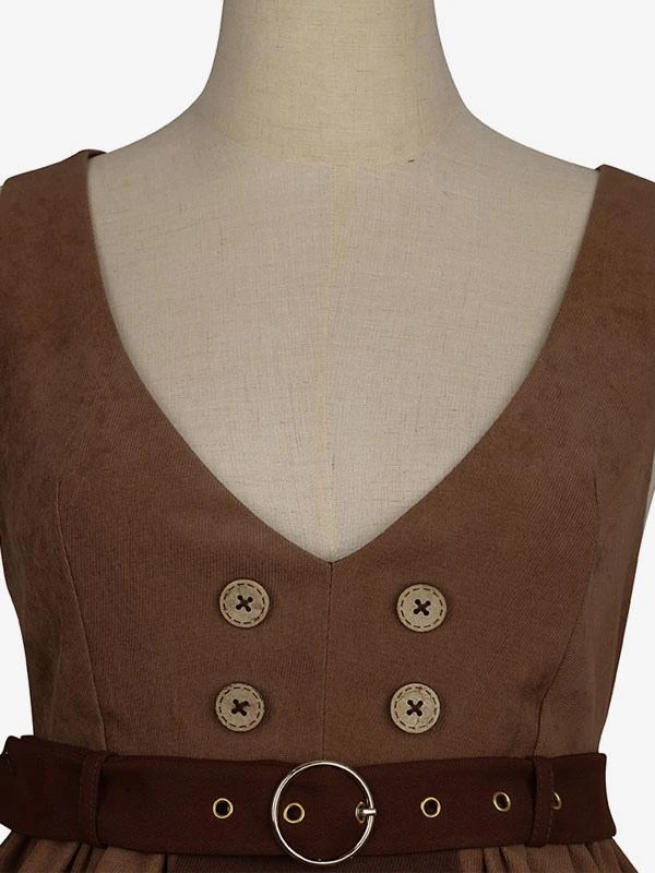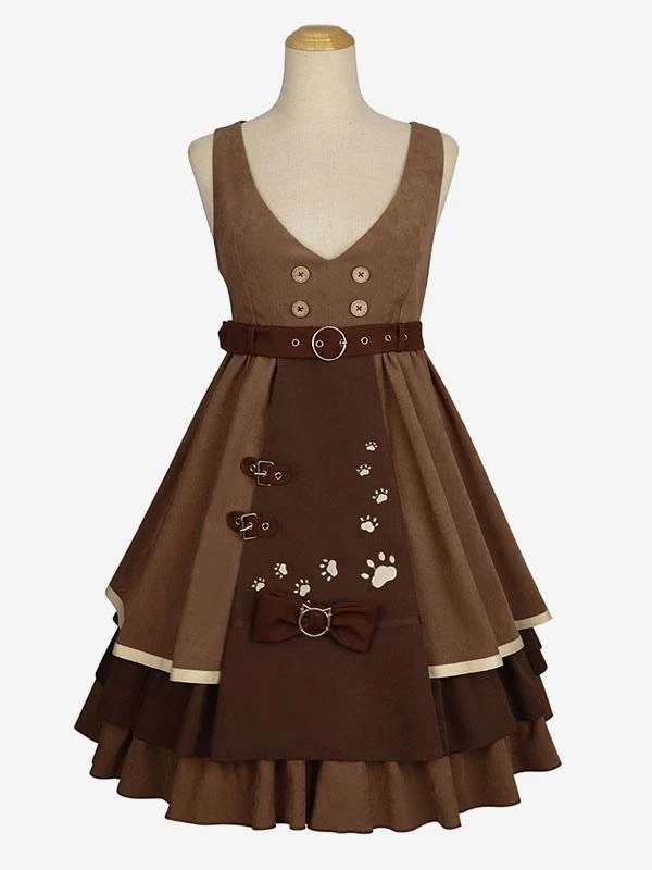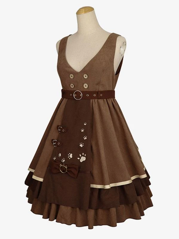 Classical Lolita Dress Polyester Bows Lolita Dresses Sleeveless Academic Coffee Brown