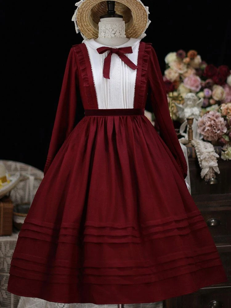 Classical Lolita Dress Polyester Bows Long Sleeves Lolita One Piece Dress