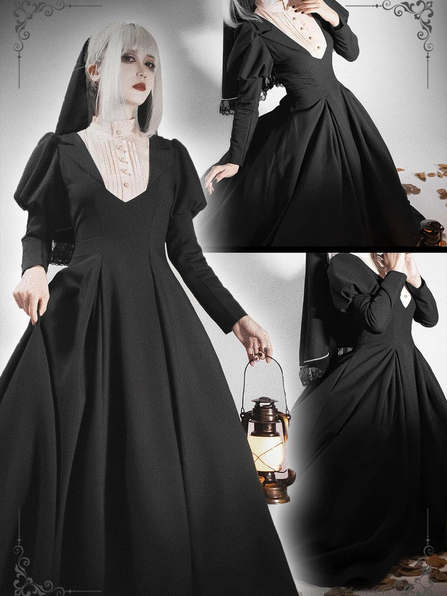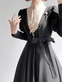 Classical Lolita Dress Polyester Ruffles Lolita Dresses Long Sleeves Classic Black