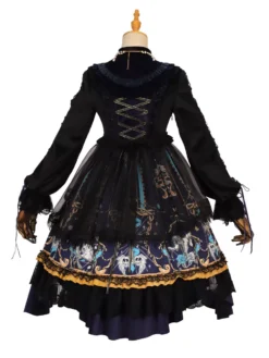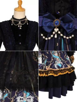 Classical Lolita OP Dress 4-Pieces Set Black Bows Lace God Redemption Dark Lolita One Piece Dresses