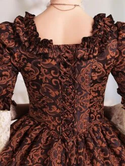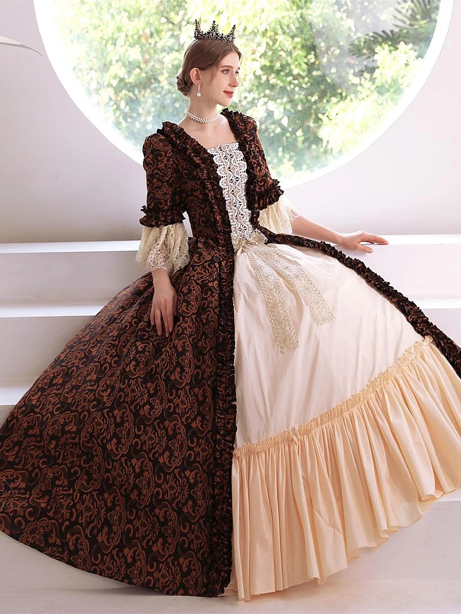 Coffee Brown Retro Costumes Polyester Dress Women’s Royal Marie Antoinette Costume Masquerade Ball Gown