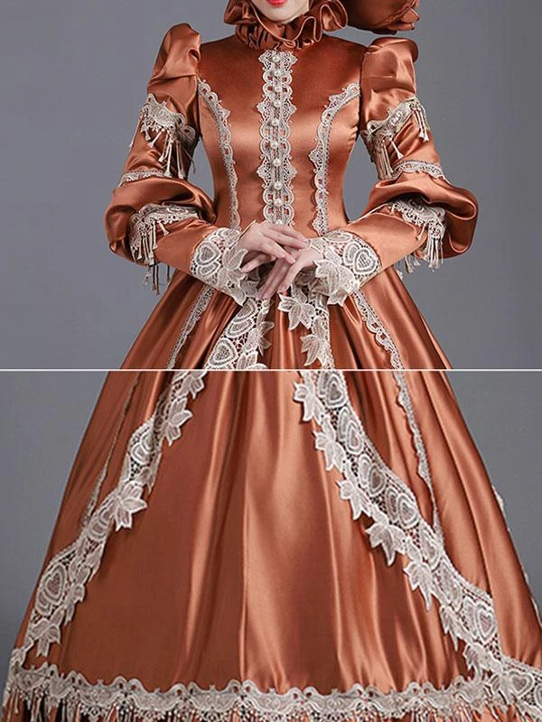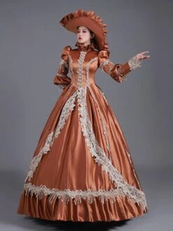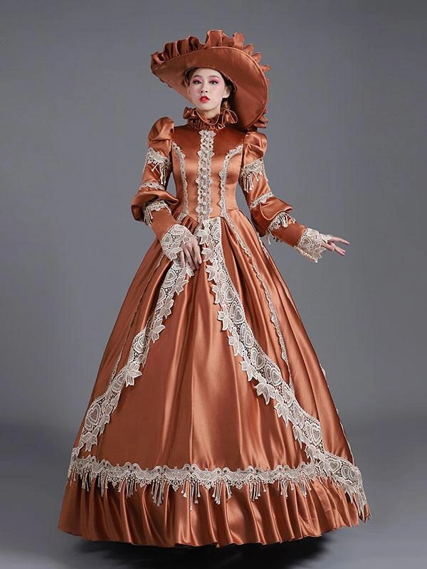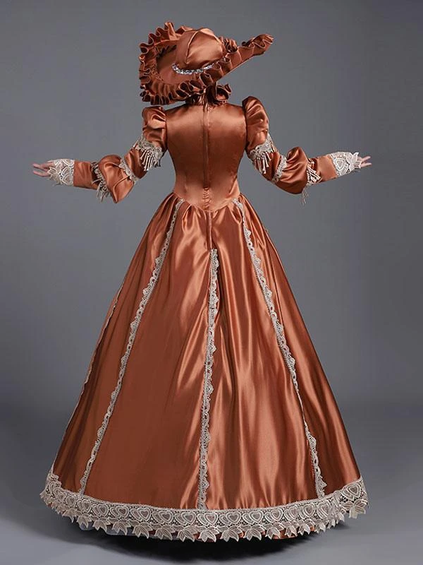Coffee Brown Retro Costumes Ruffles Polyester Hat Marie Antoinette Costume Women’s Vintage Tunic Masquerade Ball Gown
