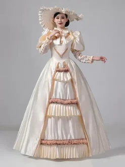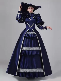 Dark Navy Retro Costumes Ruffles Polyester Dress Marie Antoinette Costume Women’s Royal Tunic Vintage Clothing