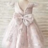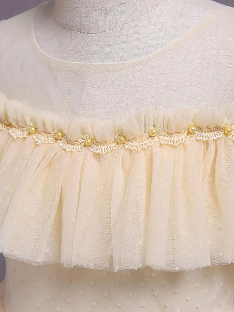 Flower Girl Dress Polyester Ruffles Illusion Neckline Short Sleeves Cameo Pink Kids Birthday Party Dresses