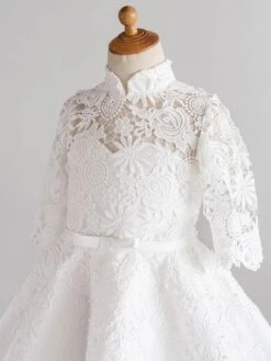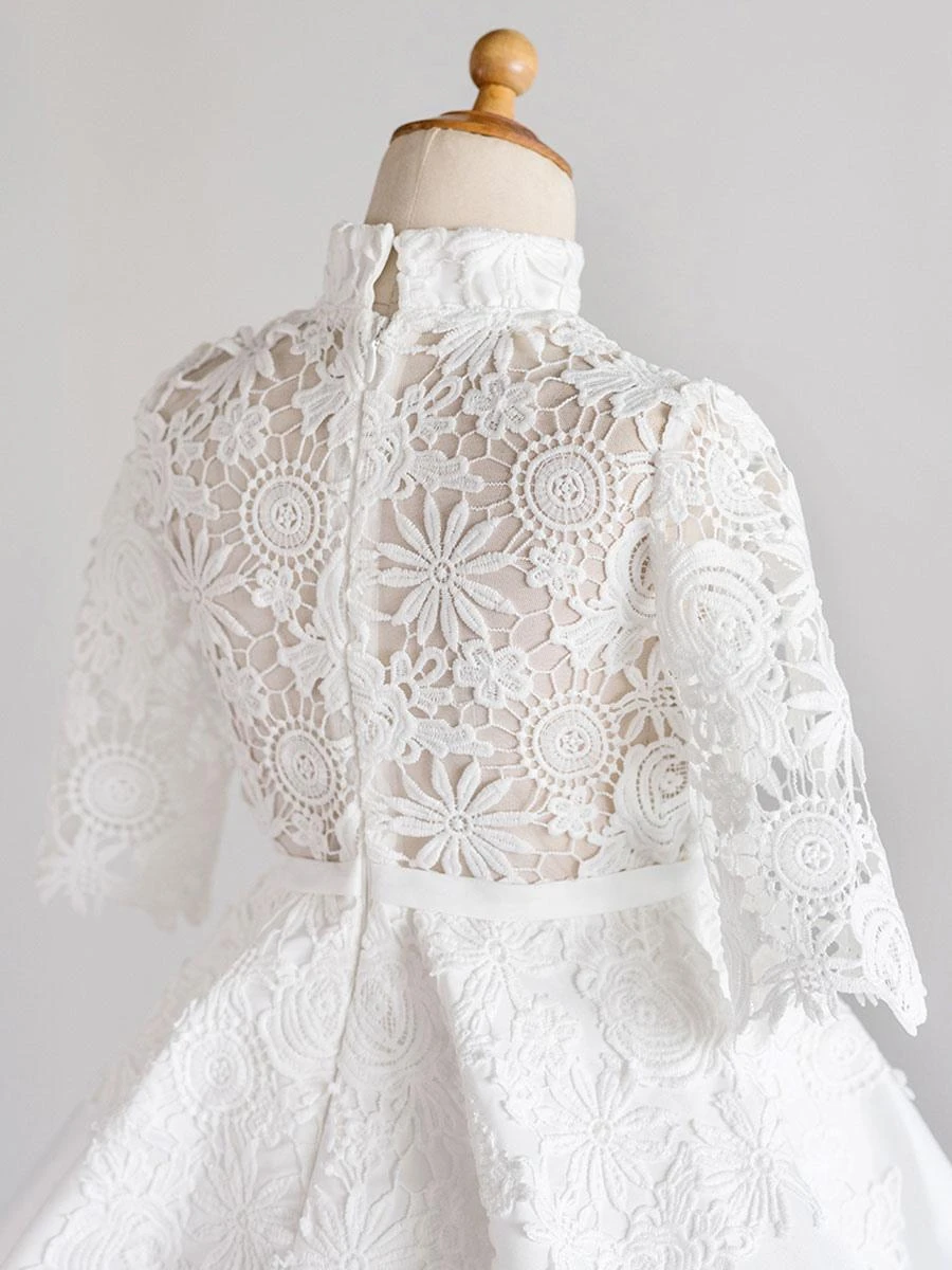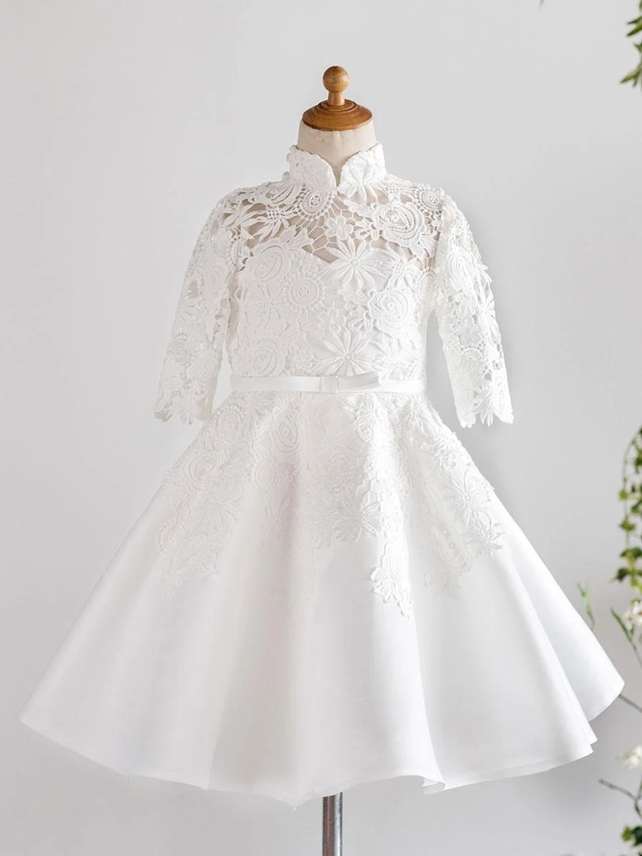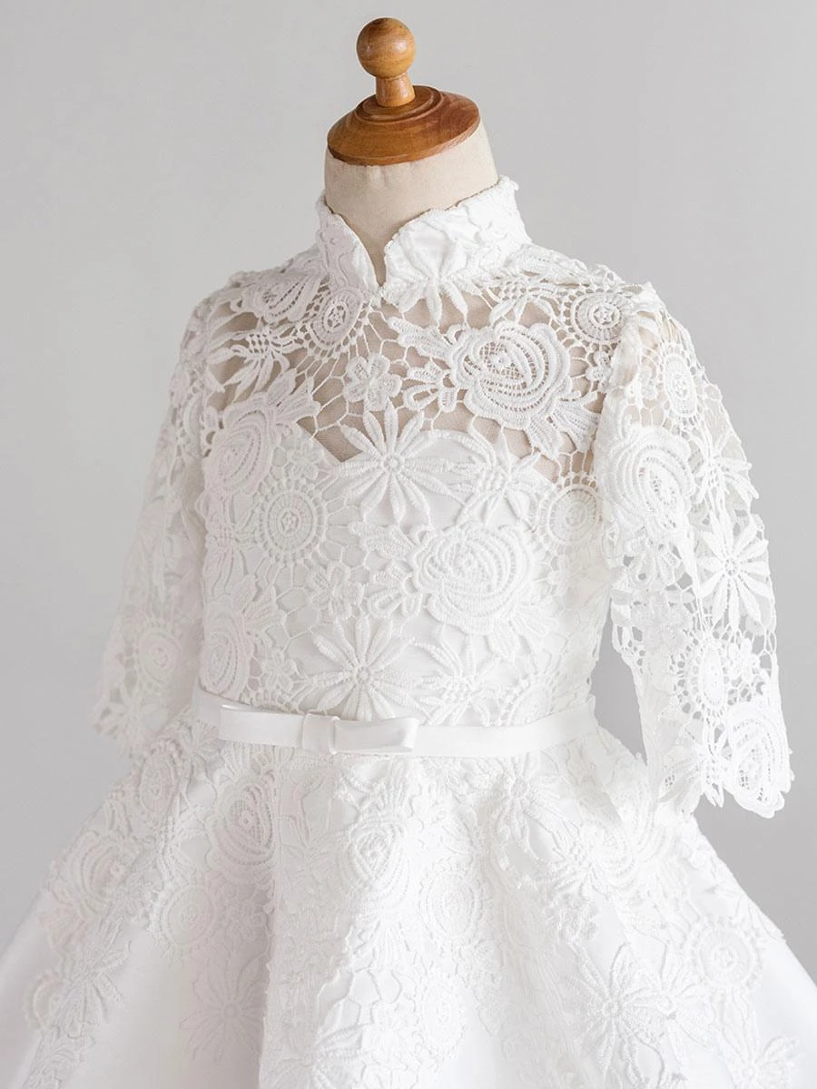 Flower Girl Dresses High Collar Half Sleeves Sash Kids Social Party Dresses