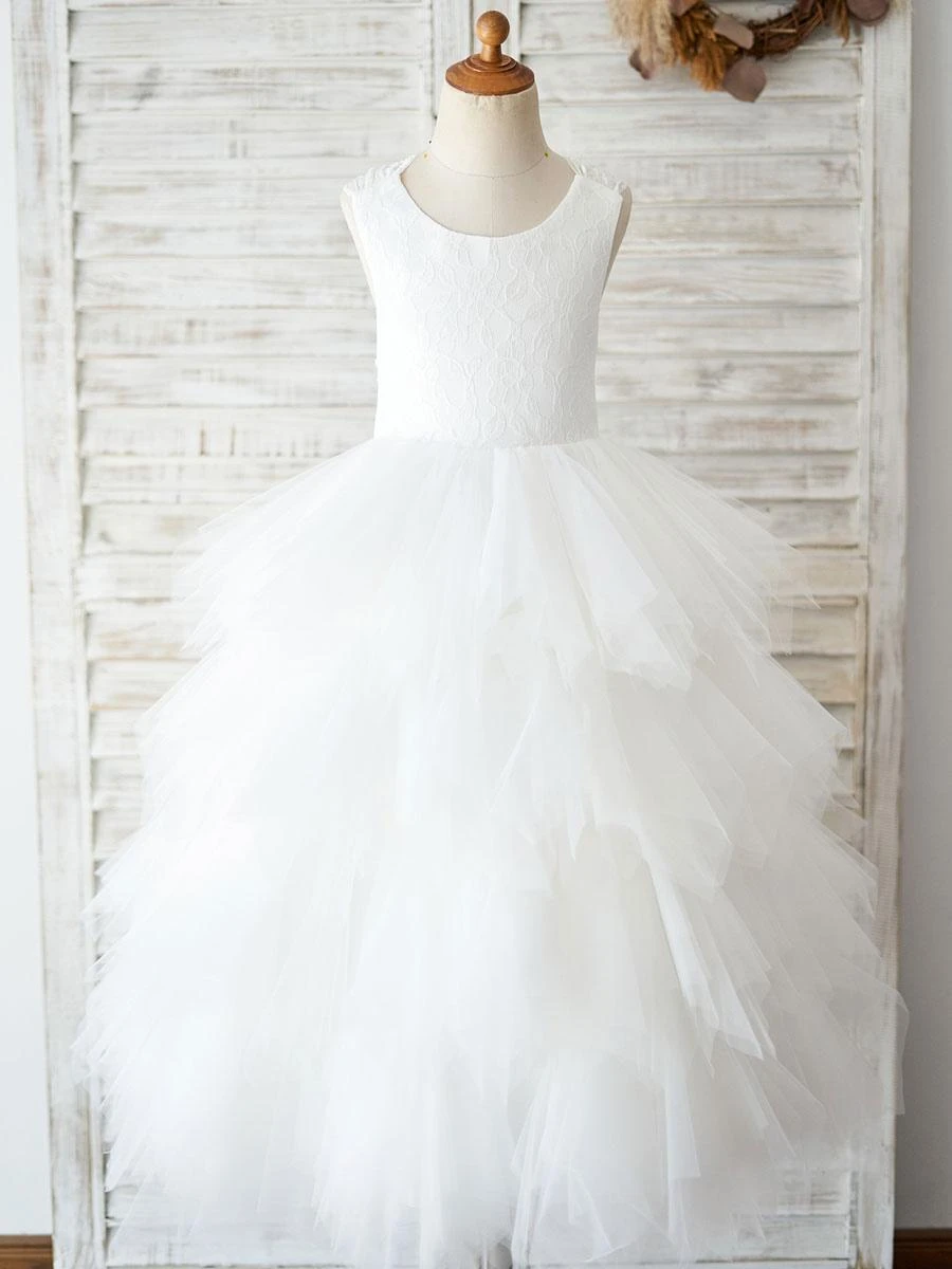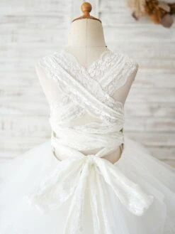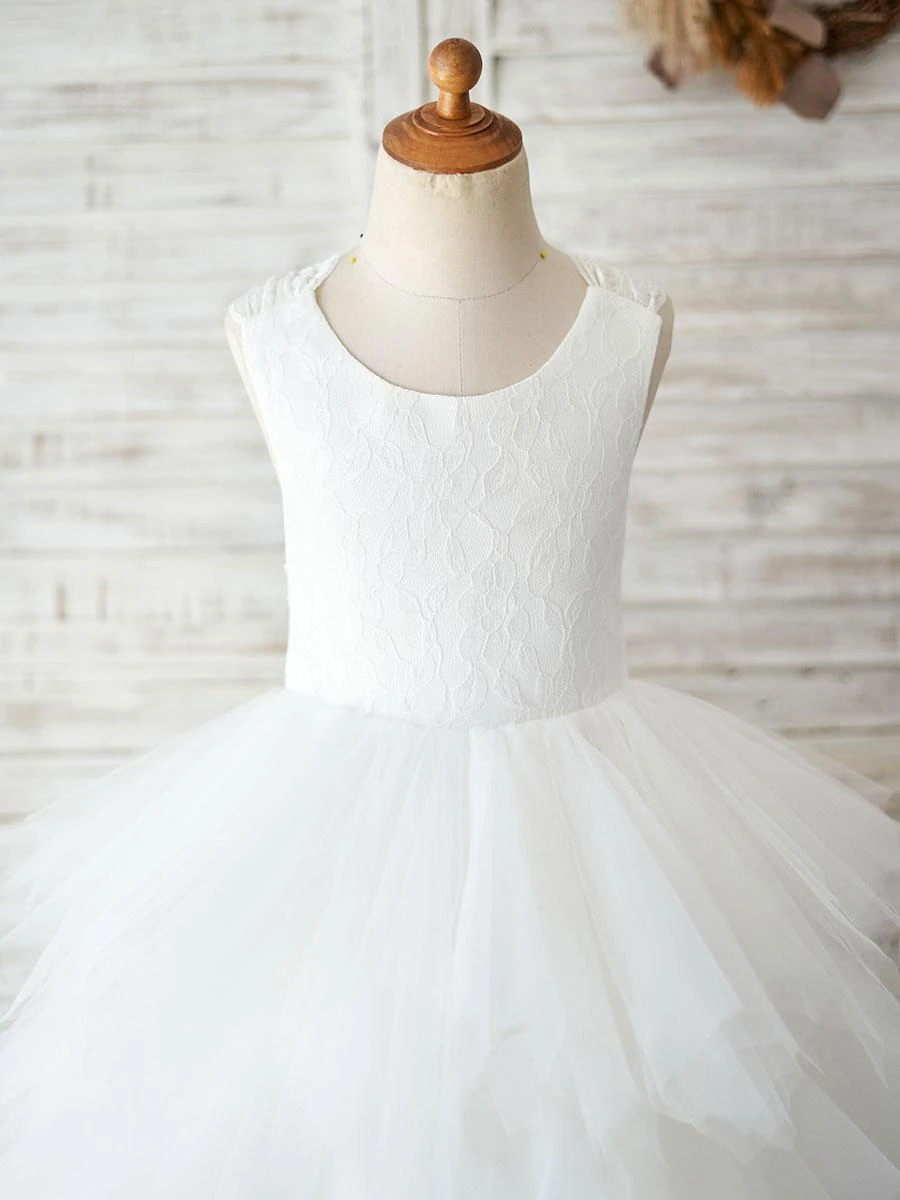 Flower Girl Dresses Jewel Neck Sleeveless Back Crossed-Lace Formal Kids Pageant Dresses
