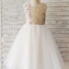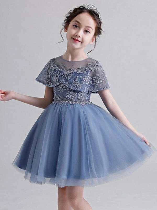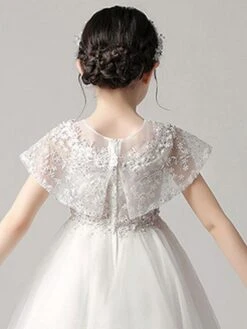 Flower Girl Dresses Jewel Neck Sleeveless Knee Length Embroidered Kids Party Dresses With Wrap