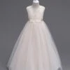 Flower Girl Dresses Jewel Neck Tulle Sleeveless Ankle Length Ball Gown Sash Kids Party Dresses