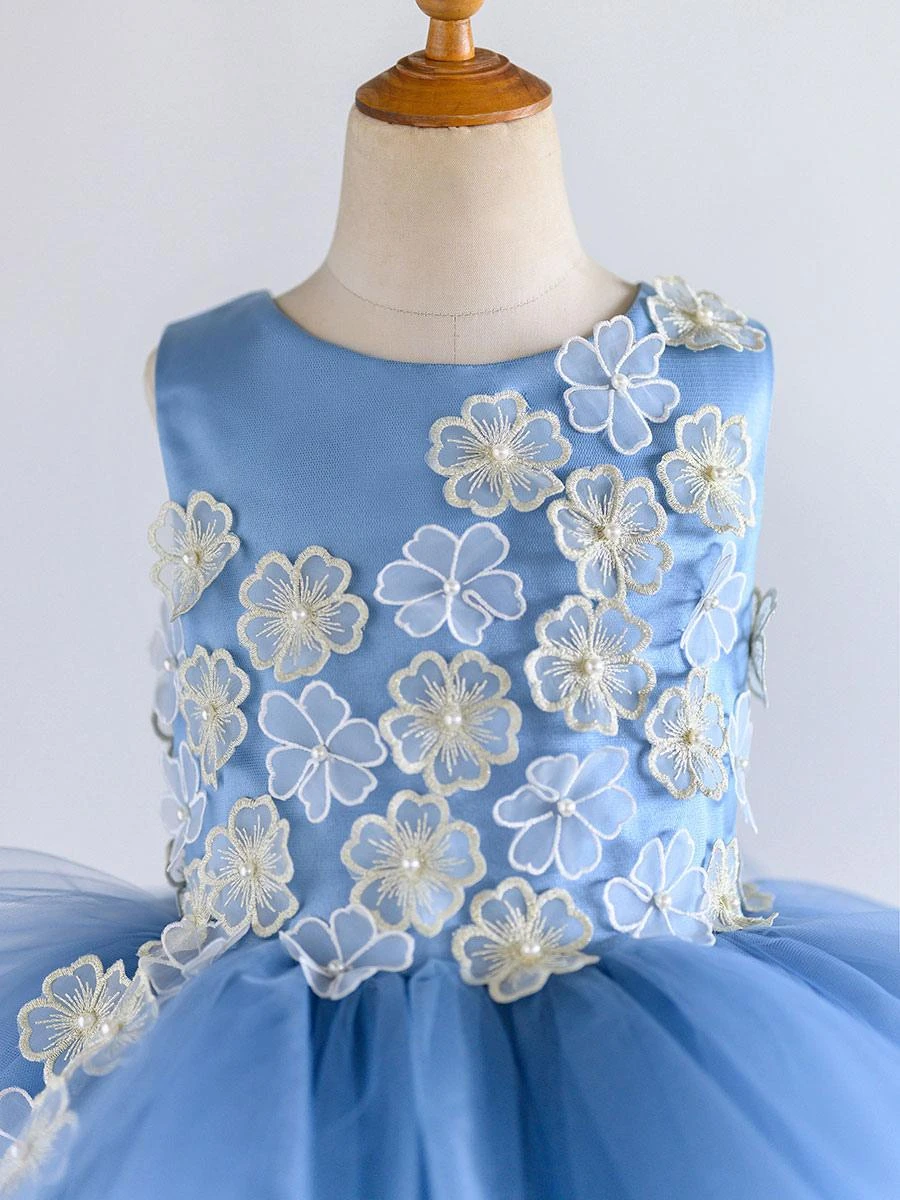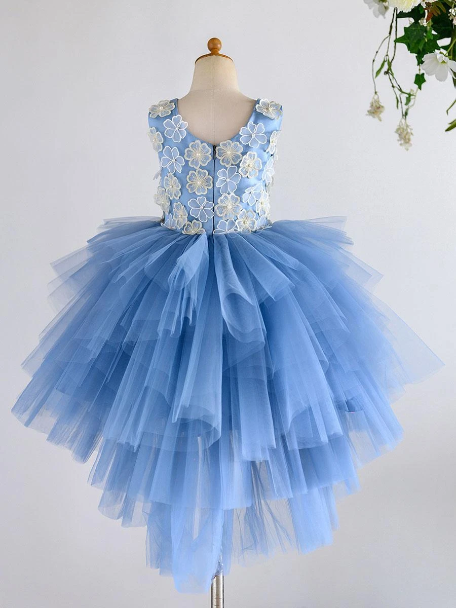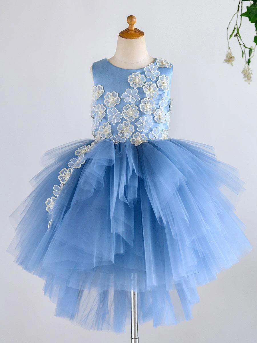 Flower Girl Dresses Jewel Neck Tulle Sleeveless Asymmetrical Princess Silhouette Flowers Kids Party Dresses