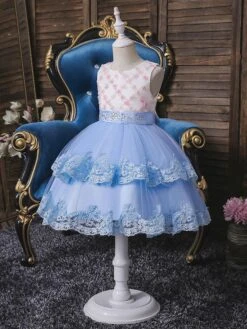 Flower Girl Dresses Light Blue Jewel Neck Sleeveless Polyester Tulle Embroidered Kids Party Dresses