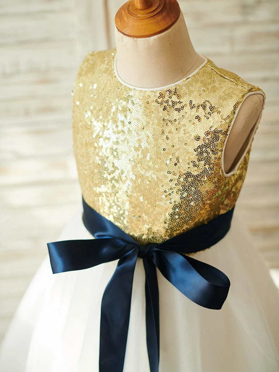Flower Girl Dresses Light Gold Jewel Neck Sleeveless Sash Kids Party Dresses