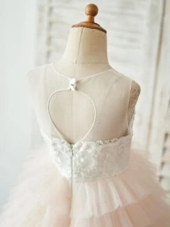 Flower Girl Dresses Light Pink Jewel Neck Sleeveless Buttons Kids Party Dresses