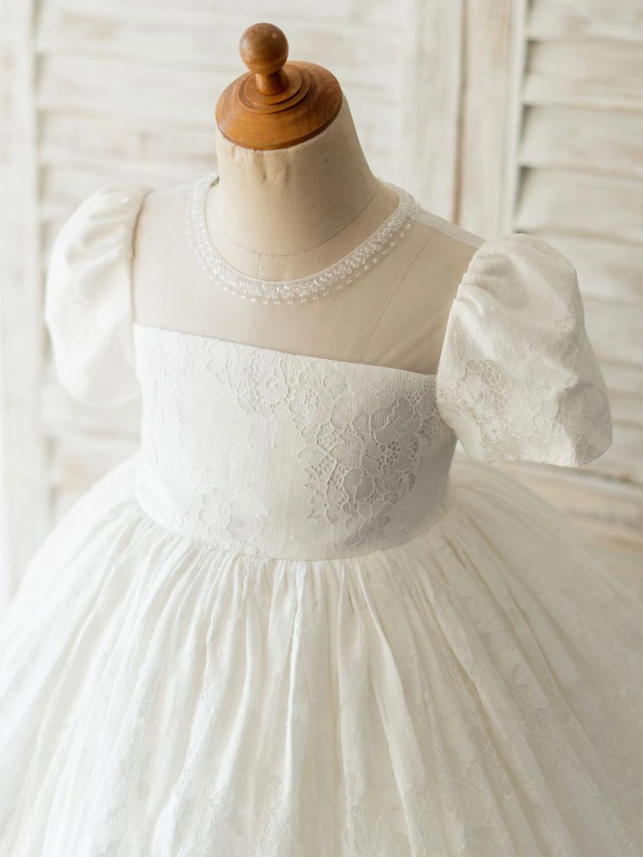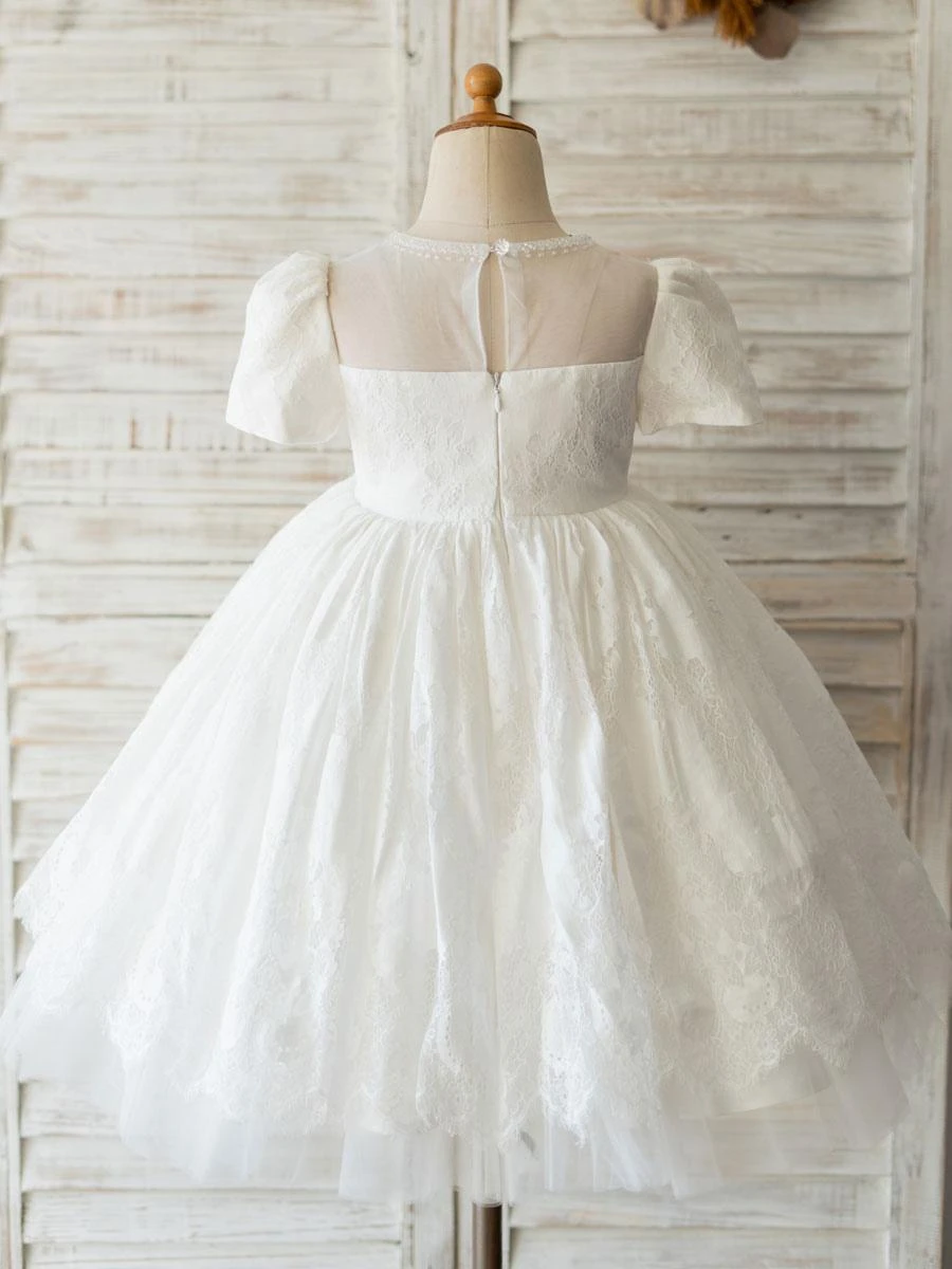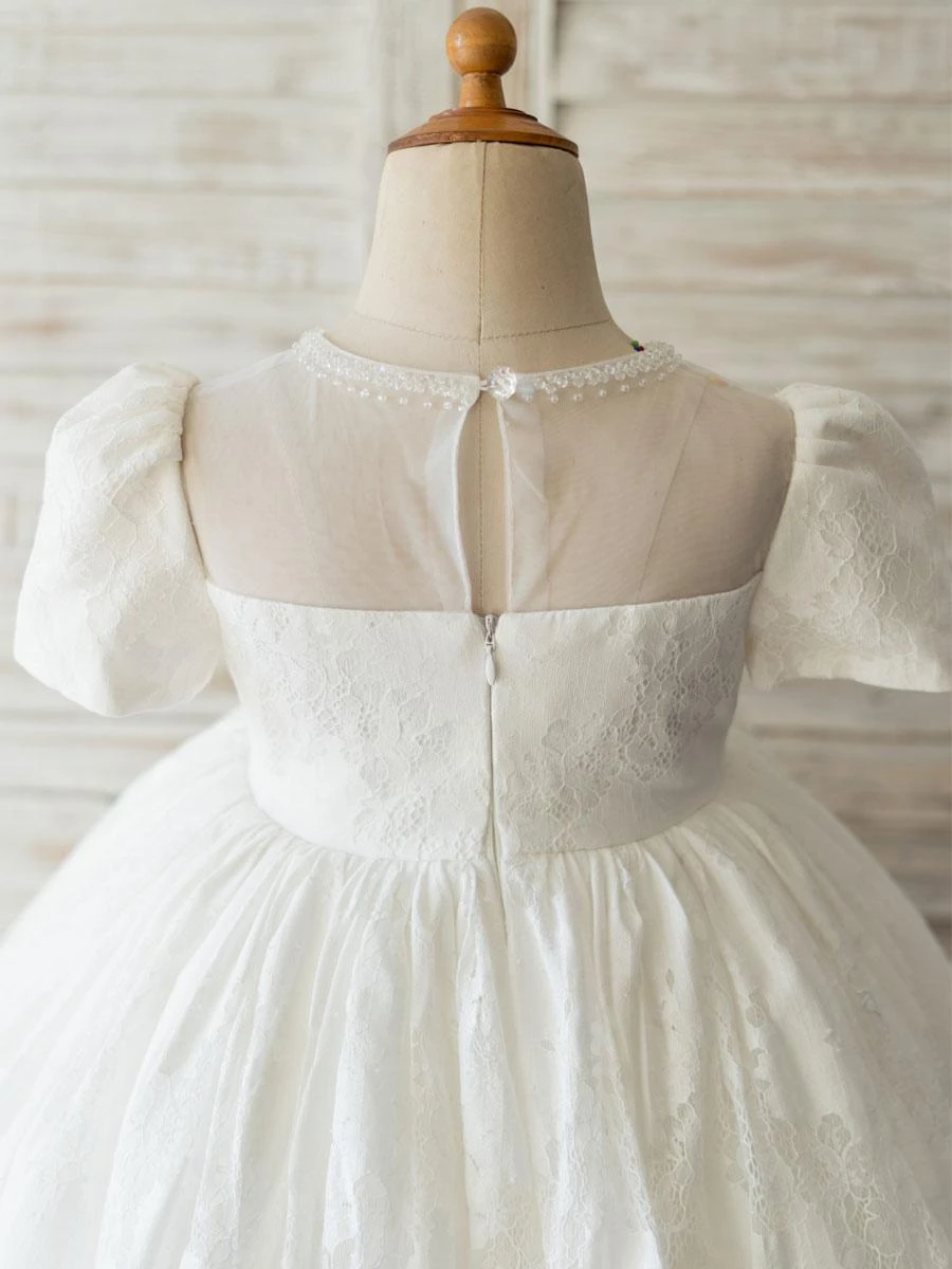 Flower Girl Dresses White Jewel Neck Short Sleeves Beaded Formal Kids Pageant Dresses Free Customization