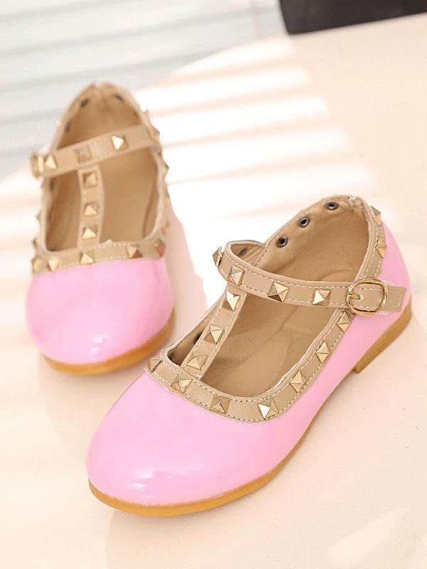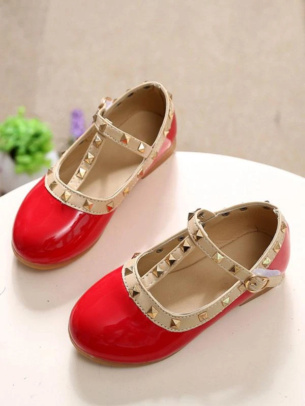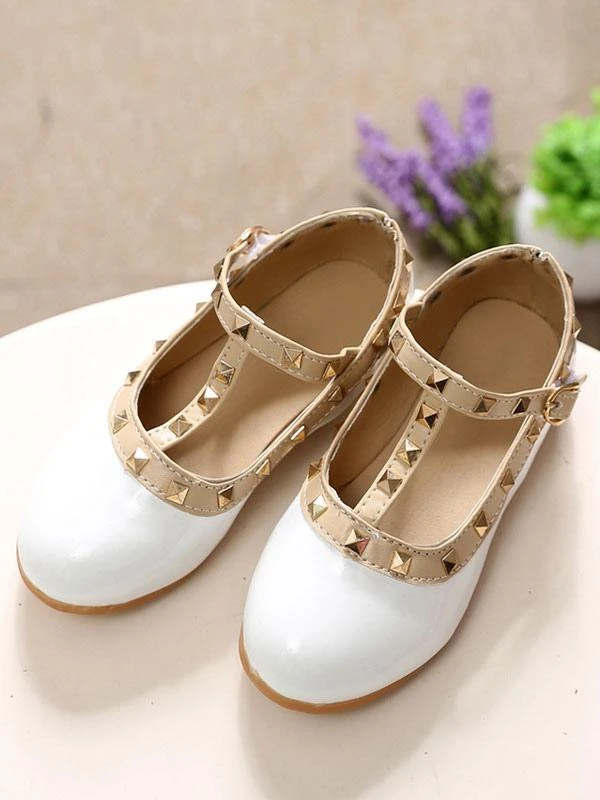 Flower Girl Shoes Black PU Leather Rivets Party Shoes For Kids