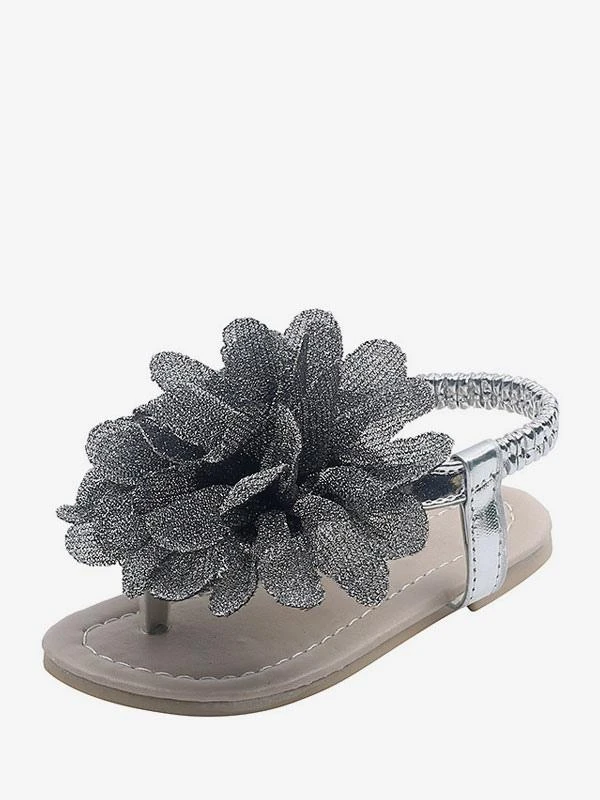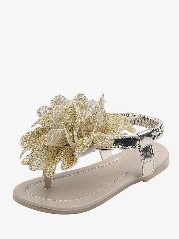 Flower Girl Shoes Gold PU Leather Flowers Party Shoes For Kids
