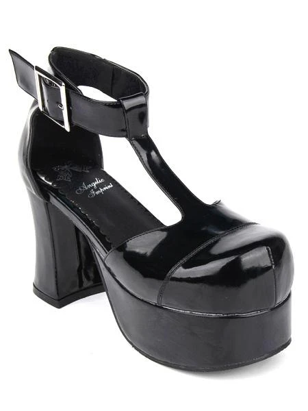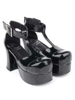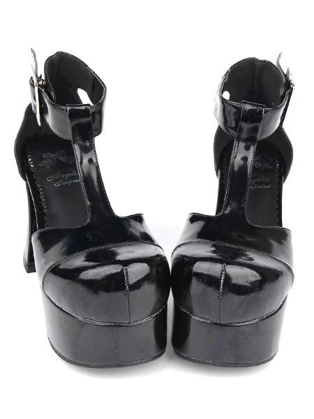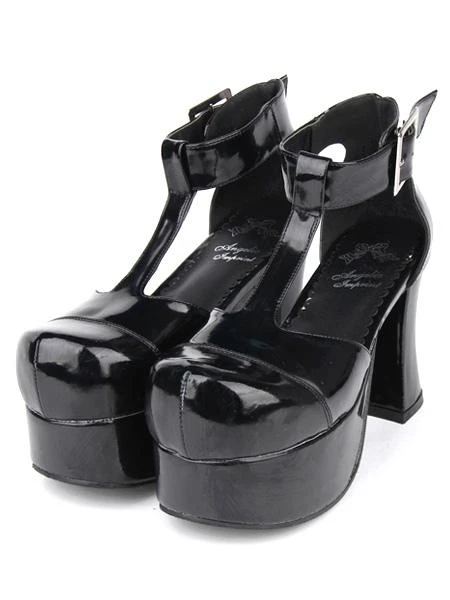 Glossy Black Lolita Sandals High Chunky Heels Platform Shoes Ankle Strap Buckle
